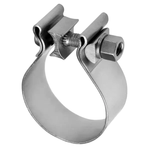 Jolly Exhaust Clamps are heavy-duty band clamps designed to provide a leak-free lap joint to connect pipe or similar joints in automotive exhaust systems. The unique Reaction block technology provides an even distribution of sealing force, preventing pipe distortion while maintaining a tight and ultra-durable seal around the clamped exhaust components. These joints are serviceable and easy to disassemble.