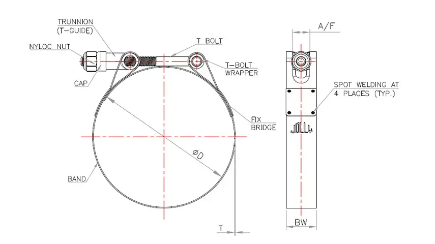 1. Jolly Fixed Bridge T-Bolt Clamp is designed as per SAE standard to provide high strength & high durable leak-proof connection.