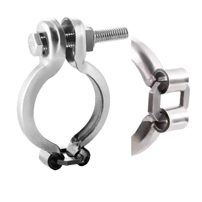 Jolly V-clamp with Connecting link is a medium duty compact V-band design for easy & quick installation of small size flanged connections. With availability of a wide range of weldless V-profiles, V-clamp is most widely used in applications like EGR tube fittings.