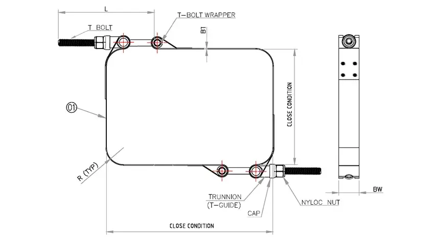 The Rectangular Double T-Bolt Clamp is a customized clamp designed to join non-circular or odd-shaped parts to create a leak-proof connection. It is commonly used in automotive, filter, and industrial applications.