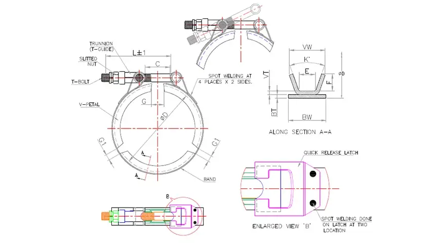 Also known as Worm Gear V-Band Coupling, Profile Clamp with Cover Band, Quick Connect V-Insert Clamp.